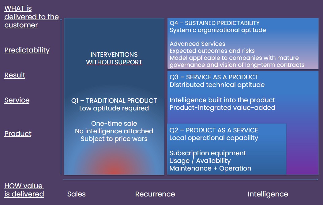 Represents the biggest challenge for the industrial seller: the transition from product sales mentality to service sales and long-term contracts.